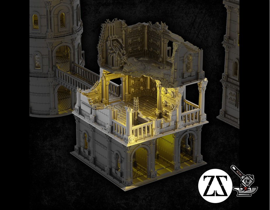 Les « Citis towers ruins, complexe 1 », de la collection » Zorpsector: Rome », sculptées par Lachlan Linton-Keane, sont en PLA (plastique) de haute qualité. Ces tours en PLA sont de luxueux décors imprimés en haute définition.