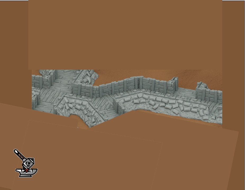 La « Zone de tranchée 2 », de la collection  » Gothic Sector: Fortress », sculptée par FABRICATORS LAIR, est en résine de haute qualité. Les décors peuvent être sous-couchés à la bombe de peinture ou être peints directement au pinceau.