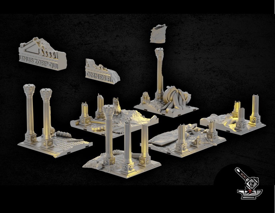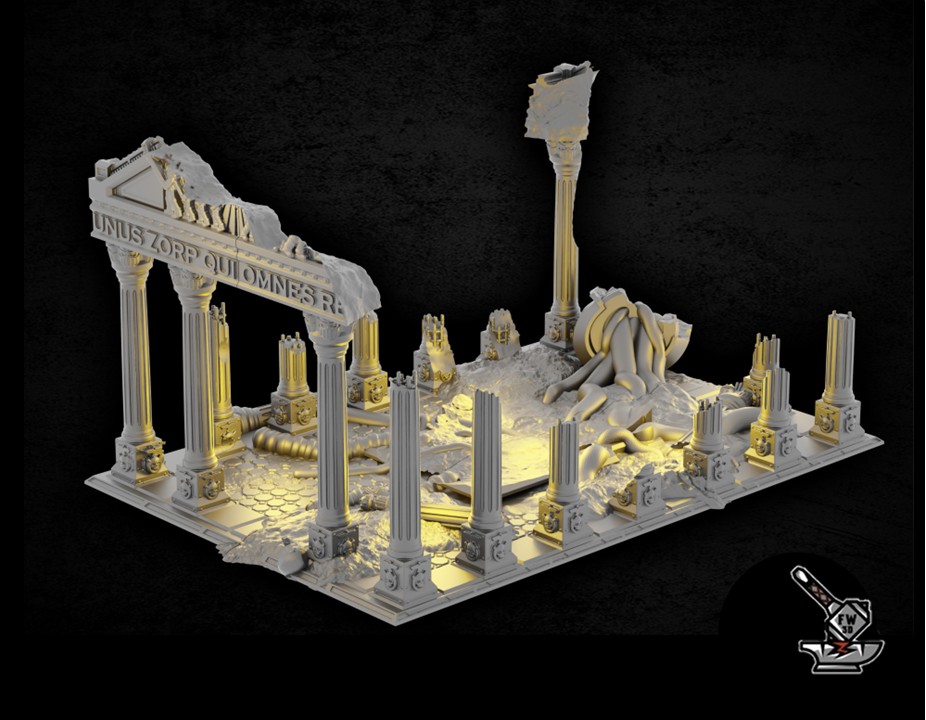 Le « Parthantéon ruin », de la collection » Zorpsector: Rome », sculpté par Lachlan Linton-Keane, est en PLA (plastique) de haute qualité. Ce décor en PLA est un luxueux décor imprimé en haute définition. C’est un des plus gros décors de notre site !