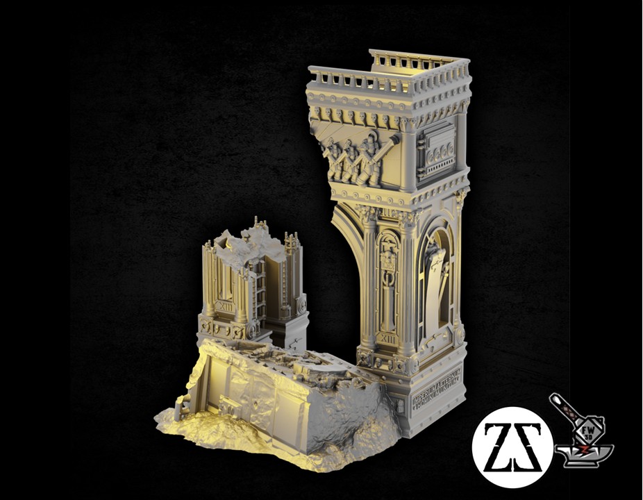 La « Triumvate Arch ruins », de la collection » Zorpsector: Rome », sculptée par Lachlan Linton-Keane, est en PLA (plastique) de haute qualité. Ce décor en PLA est un luxueux décor imprimé en haute définition. C’est un des plus gros décors de notre site !