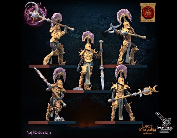 Les  » 5 élus de la luxure hallebarde 1  » de la collection  » Luft Warriors Vol 4 « , sculptés par Lost Kingdom Miniatures, sont en résine de haute qualité. Les figurines peuvent être sous-couchées à la bombe de peinture ou être peintes directement au pinceau.