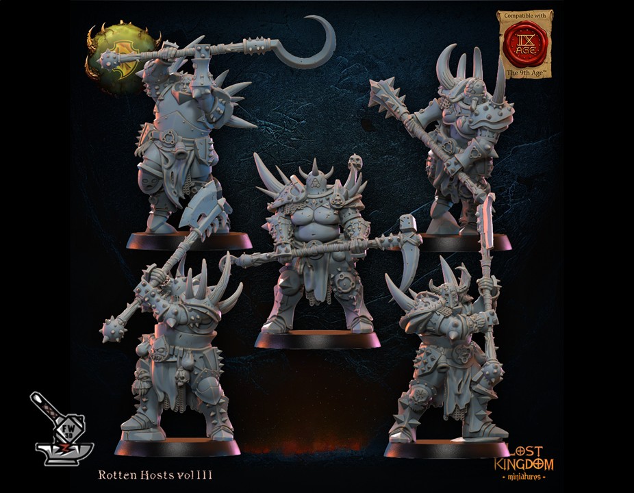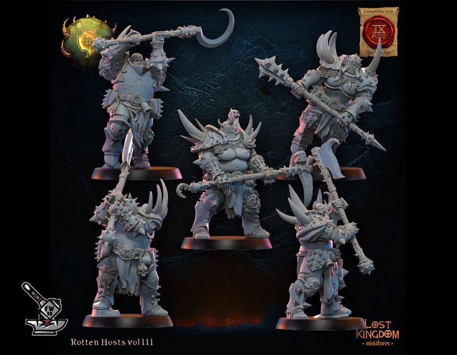 Les » 5 guerriers des Putrid Chosen (rang avant) » de la collection » Rotten Hosts Vol 3 « , sculptés par Lost Kingdom Miniatures, sont en résine de haute qualité. Les figurines peuvent être sous-couchées à la bombe de peinture ou être peintes directement au pinceau.