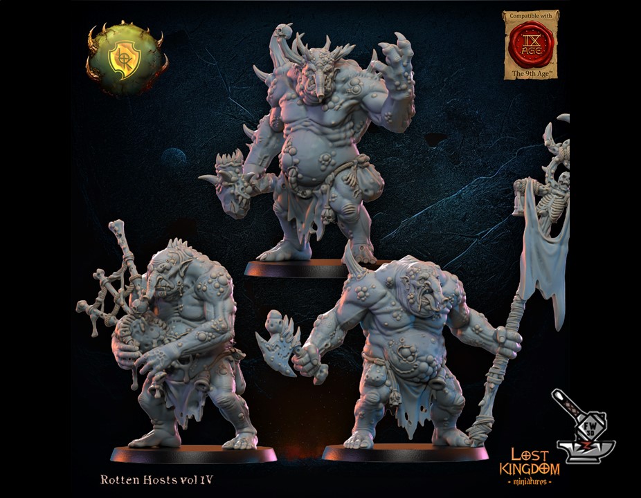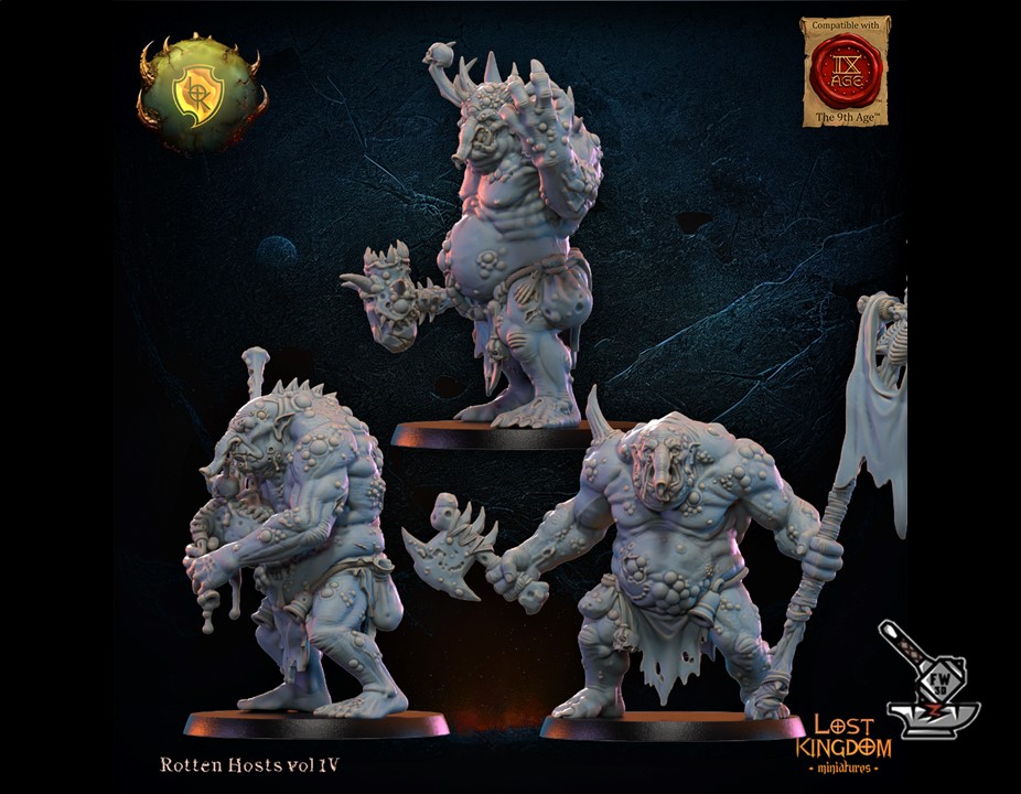 L’ » EMC des Noxious Trolls » de la collection » Rotten Hosts Vol 4 « , sculpté par Lost Kingdom Miniatures, est en résine de haute qualité. Les figurines peuvent être sous-couchées à la bombe de peinture ou être peintes directement au pinceau.