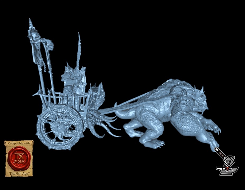 Le » Seigneur du chaos sur Char avec bête gore » de la collection » Infernal Doom Fortress « , sculpté par Philip Sin, est en résine de haute qualité. La figurine peut être sous-couchée à la bombe de peinture ou être peinte directement au pinceau.