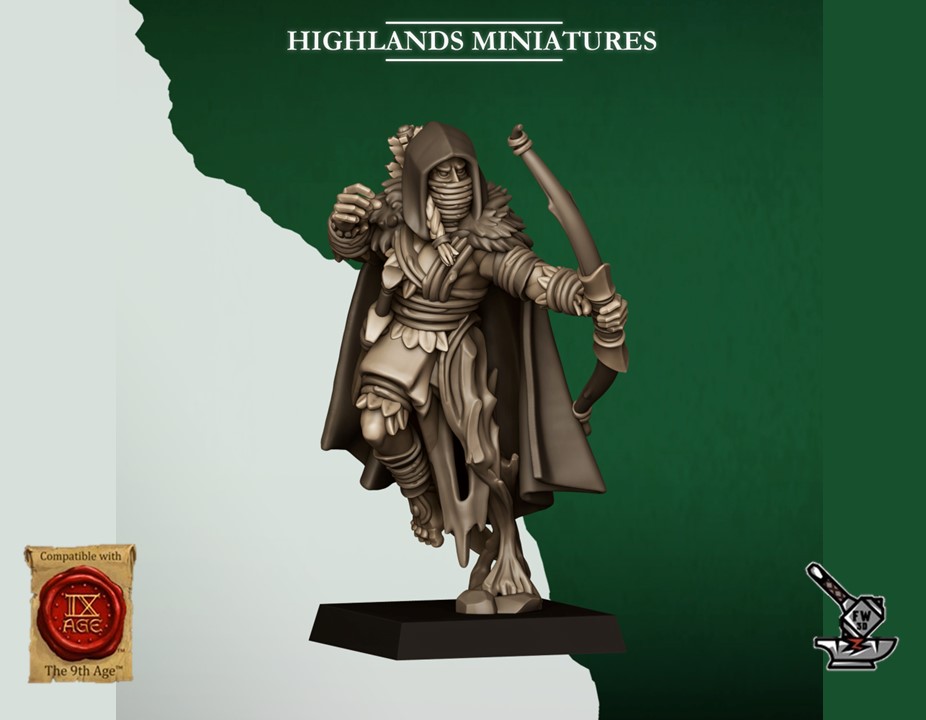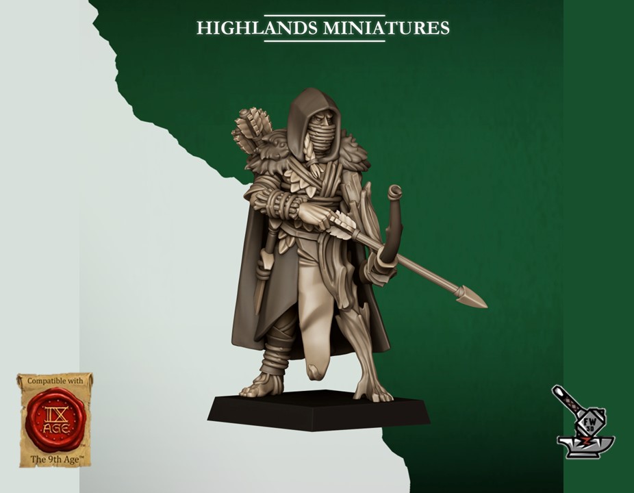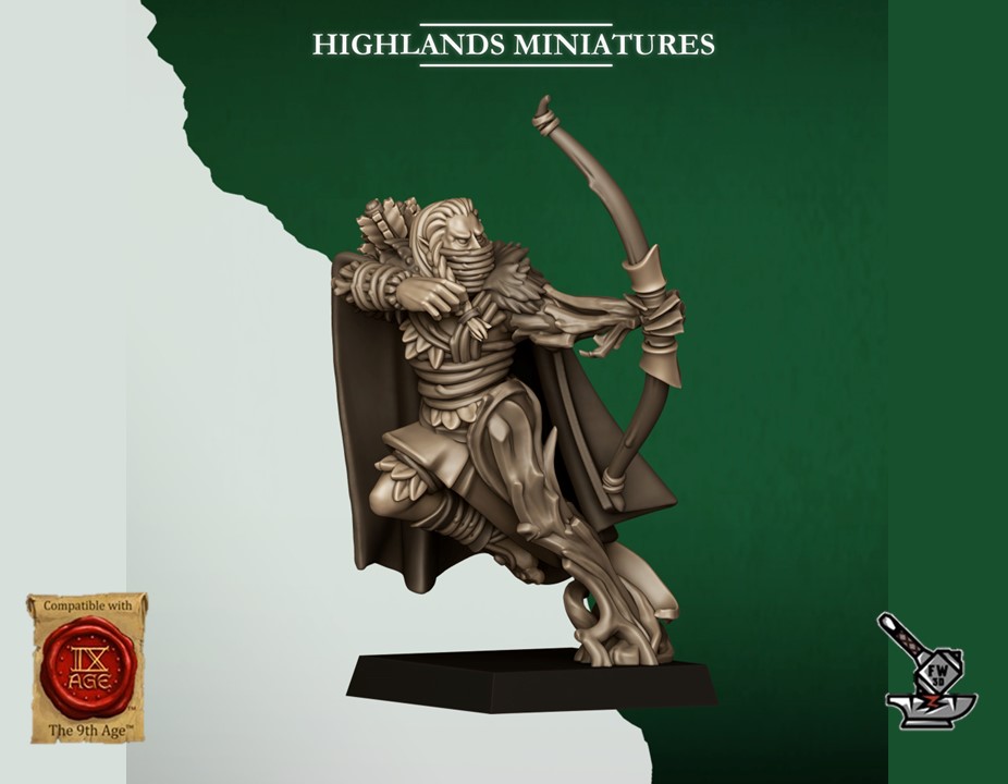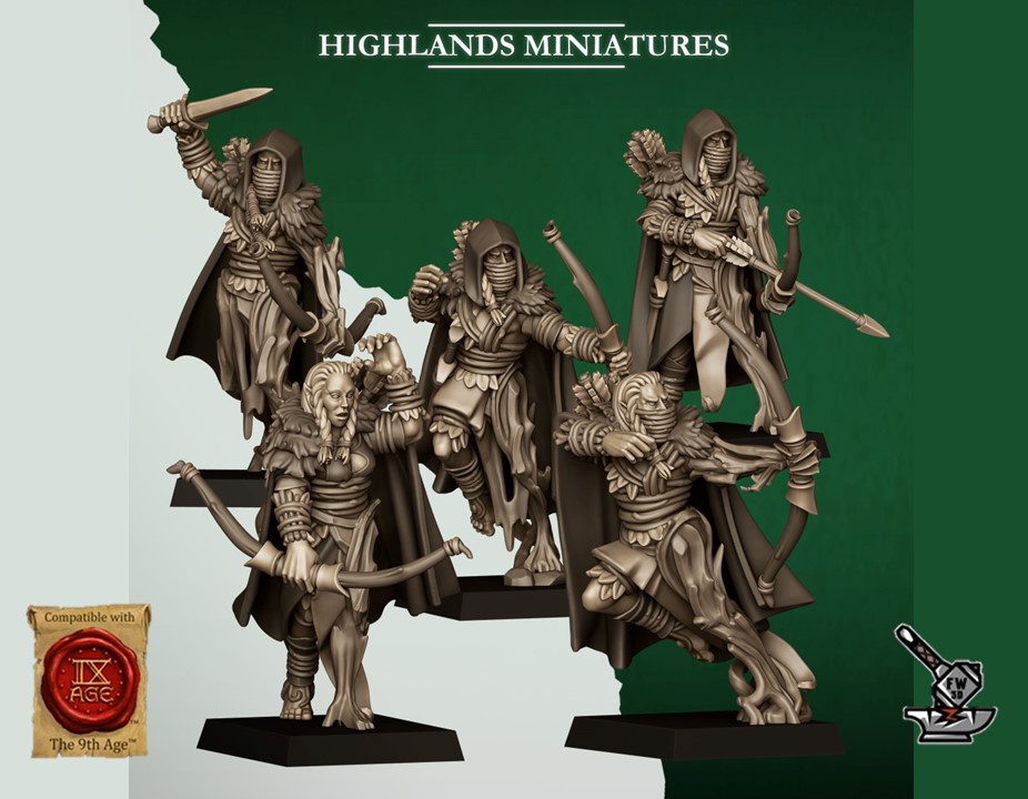 Les » 10 Eclaireurs elfes sauvages (scouts) » de la collection « Feral Elfes », sculptés par Highland Miniatures, sont en résine de haute qualité. Les figurines peuvent être sous-couchées à la bombe de peinture ou être peintes directement au pinceau.
