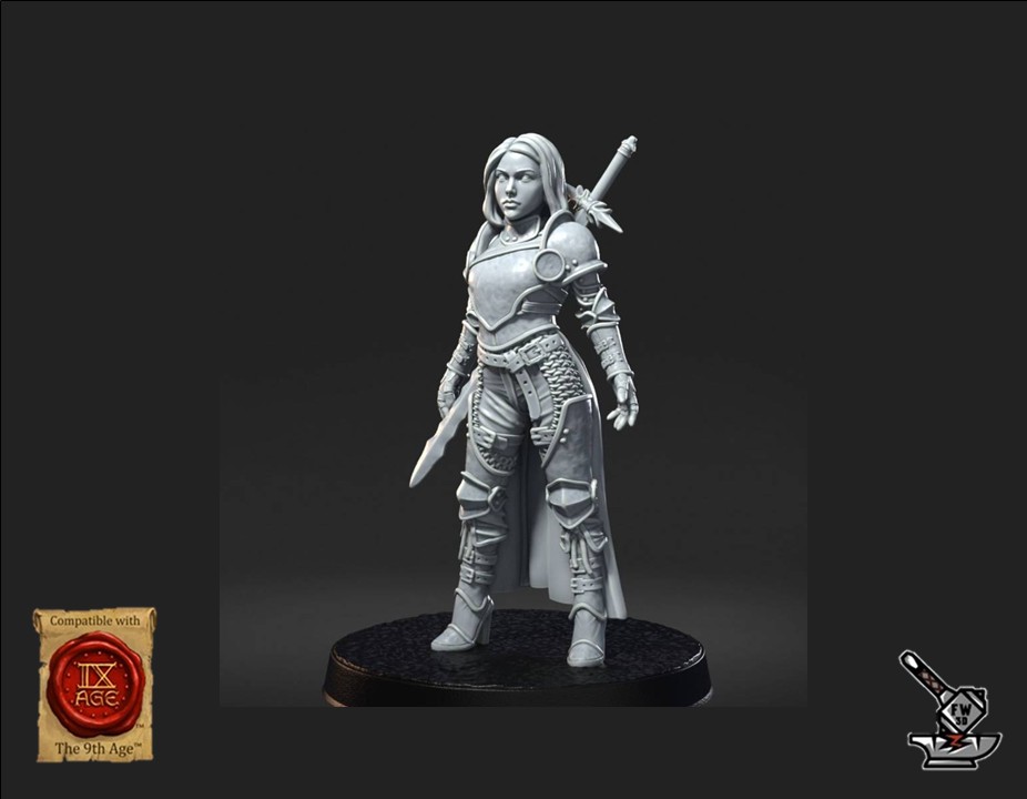 » Serenya Ironvale » de la collection » Dreaddaughters and Stonewrath Vol 2 « , sculptée par RN Estudio, est en résine de haute qualité. La figurine peut être sous-couchée à la bombe de peinture ou être peinte directement au pinceau.