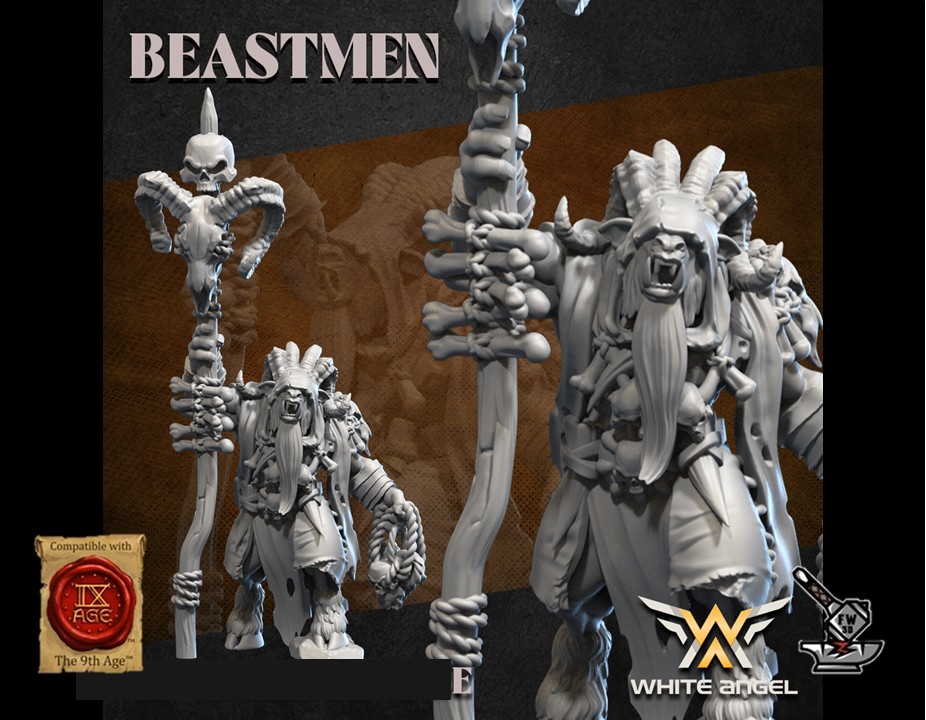 Le « Grand Shaman Homme-bête », sculpté par White Angel Miniatures, est en résine de haute qualité. La figurine peut être sous-couchée à la bombe de peinture ou être peinte directement au pinceau.