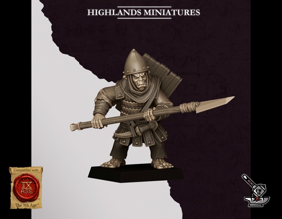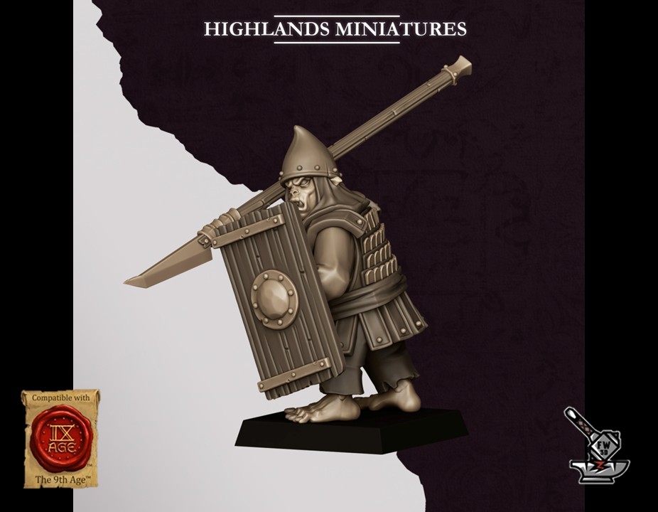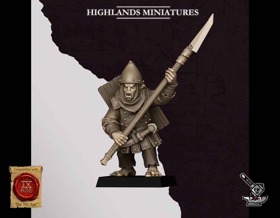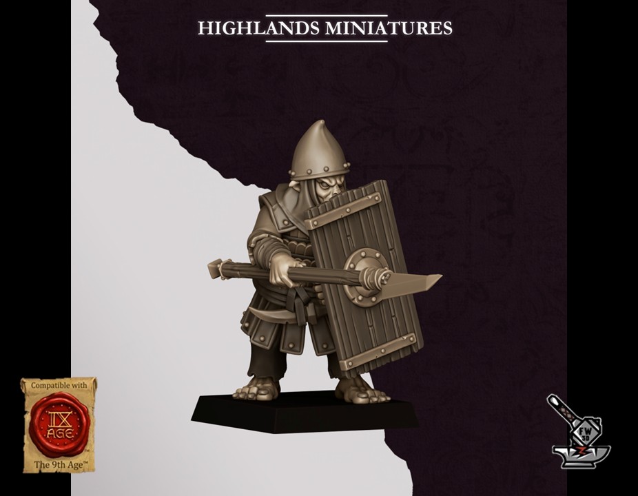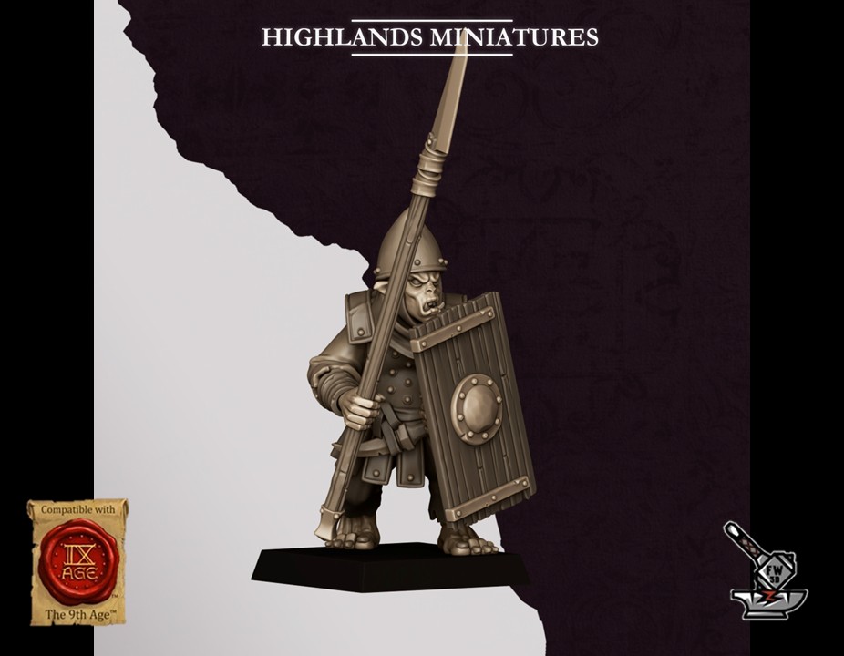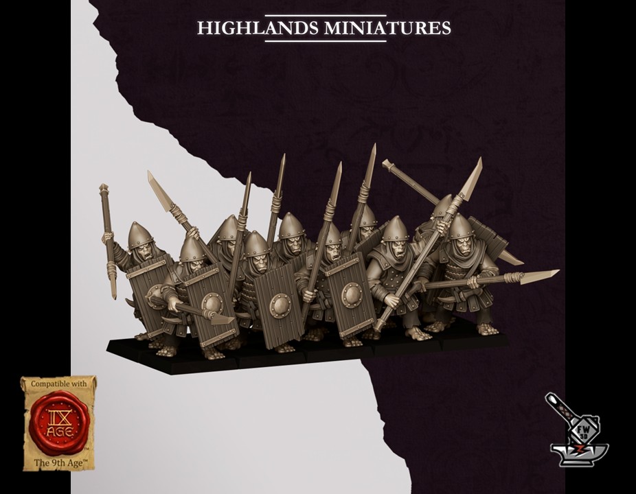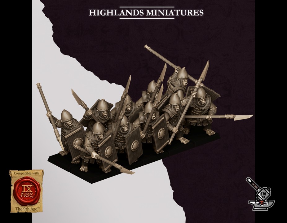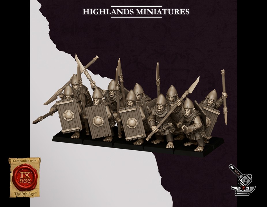 Les « 10 Lanciers Hobgobelins des Sons of Marduk avec boucliers », sculptés par Highlands Miniatures, sont en résine de haute qualité. Les figurines peuvent être sous-couchées à la bombe de peinture ou être peintes directement au pinceau.