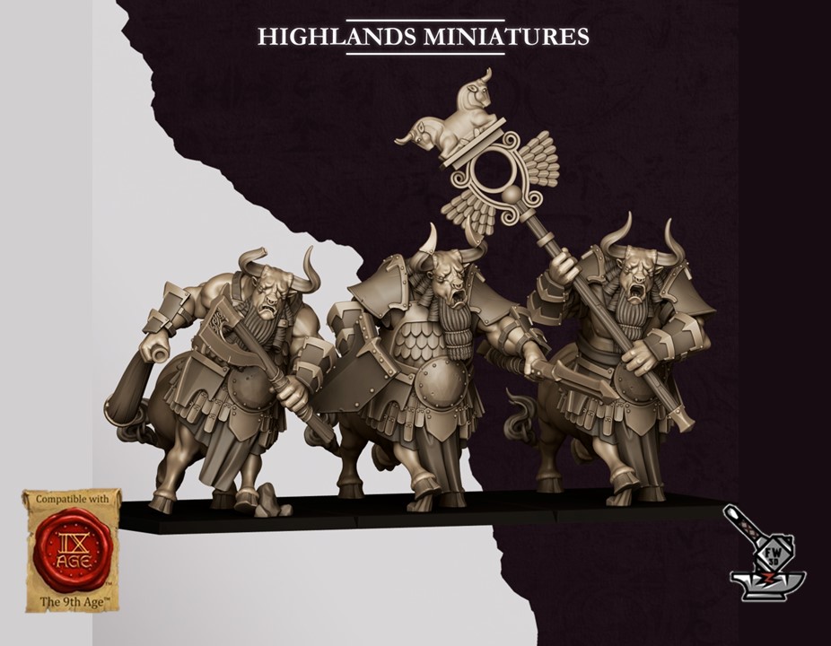 « 6 Minotaures Sons of Marduk avec lances », sculptés par Highlands Miniatures