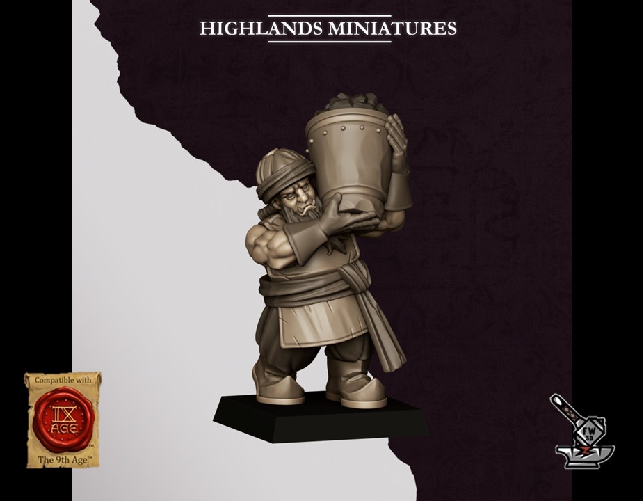 Le « Canon des Sons of Marduk », de la collection » Sons of Marduk « , sculpté par Highlands Miniatures, est en résine de haute qualité. La figurine peut être sous-couchée à la bombe de peinture ou être peinte directement au pinceau.