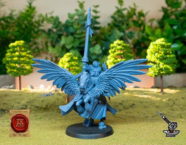 « Sir Lancelot, haut Duc de Galia sur pégase avec lance », sculpté par Highlands miniatures, est en résine de haute qualité et impression. La figurine peut être sous-couchée à la bombe de peinture ou être peinte directement au pinceau.