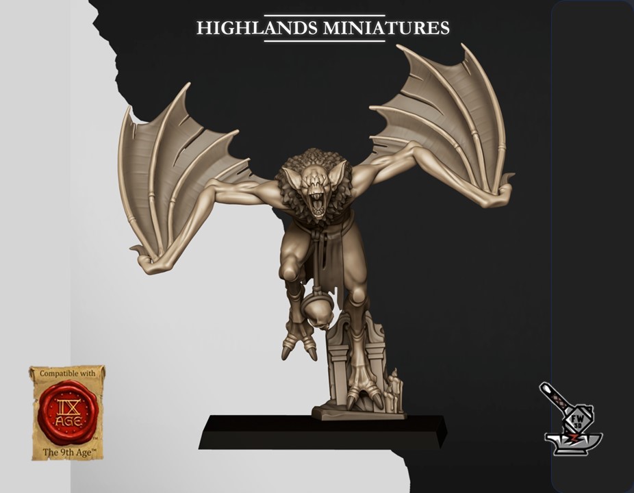 Les « 3 Chauve-souris géantes », sculptées par Highlands Miniatures sont en résine de haute qualité. Les figurines peuvent être sous-couchées à la bombe de peinture ou être peintes directement au pinceau.