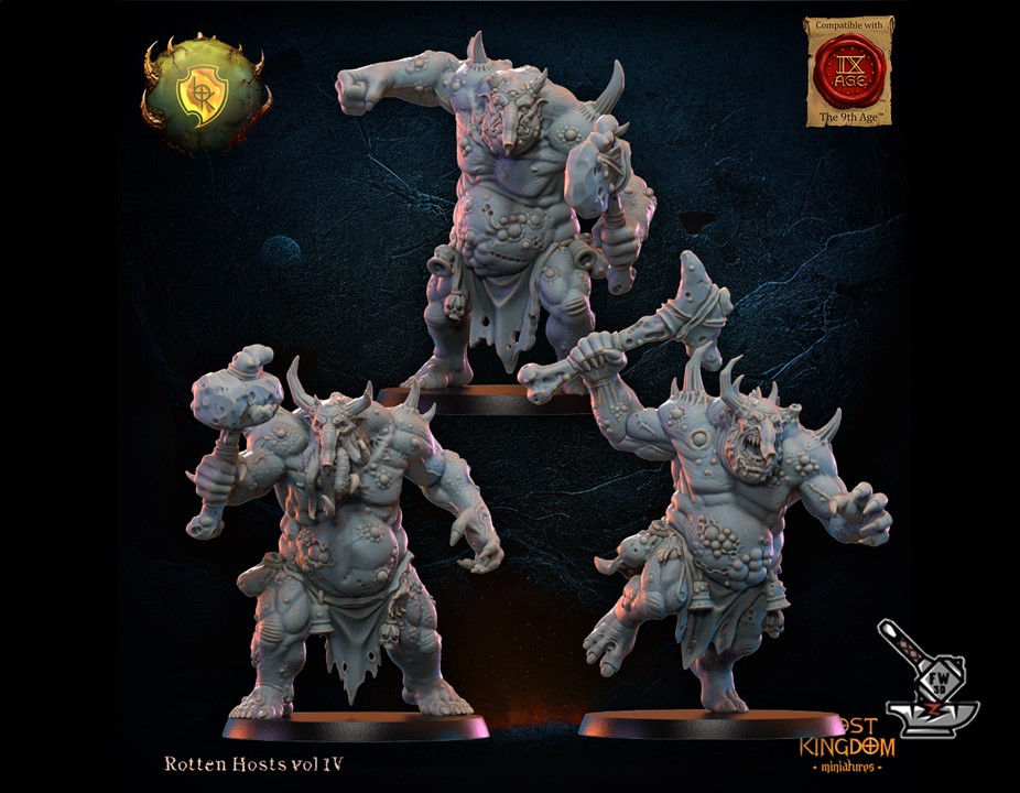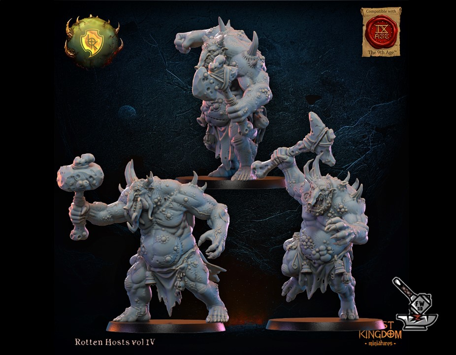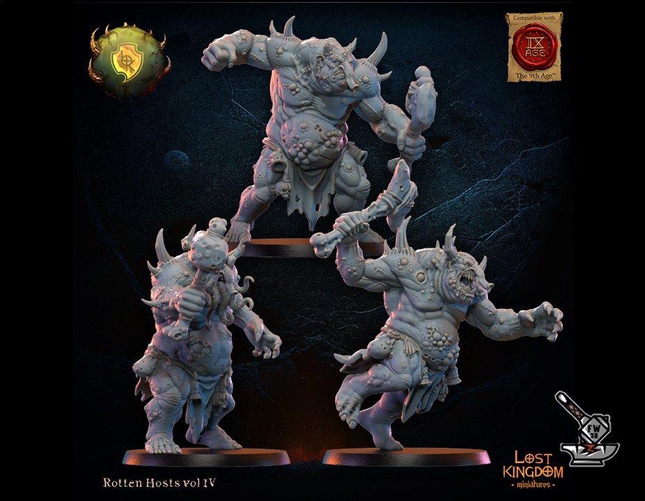 The ” 3 Noxious Trolls ” of the collection ” Rotten Hosts Vol 4 “, sculpted by Lost Kingdom Miniatures, are made of high quality resin. The figures can be undercoated with spray paint or painted directly with a brush.
