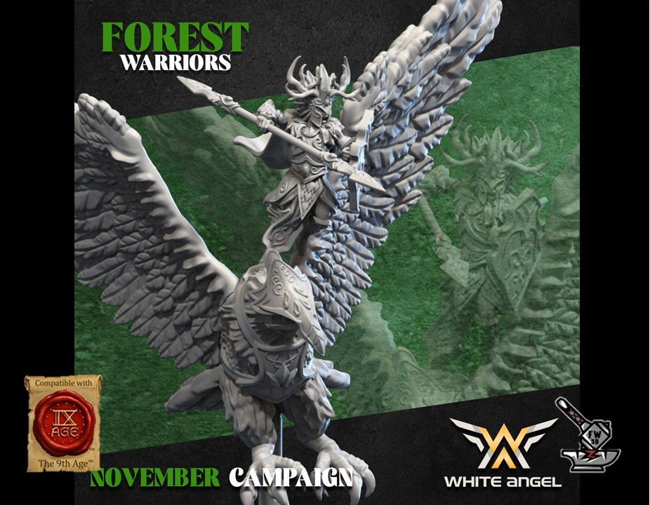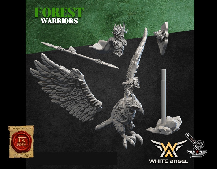 The ” Seigneur elfe des forêts sur aigle “, Sculpted by White Angel Miniatures, is made of high quality resin. The figurine can be undercoated with spray paint or painted directly with a brush.