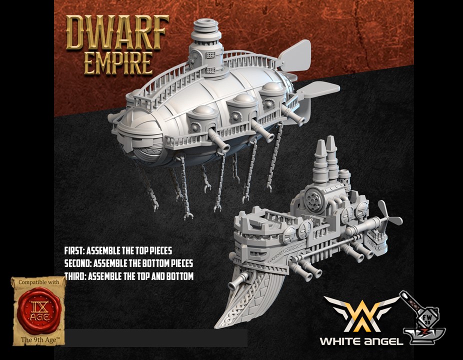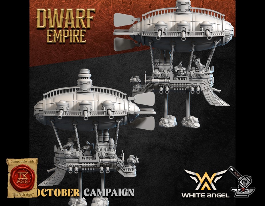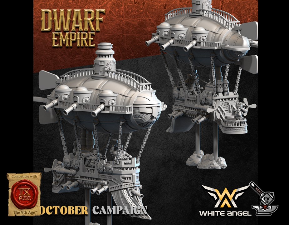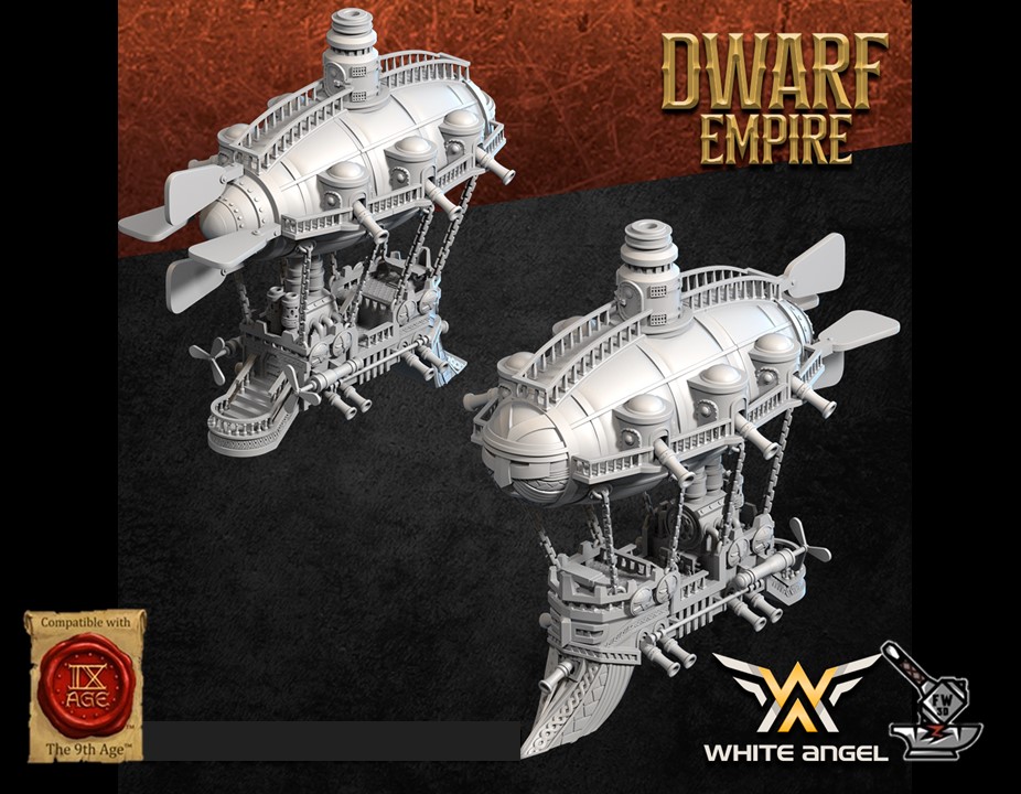 Le « Zeppelin Deluxe de l’Empire Nain », of the collection ” Dwarf Empire for the Win III “, Sculpted by White Angel Miniatures is in high quality resin (12K). The figurine can be undercoated with spray paint or painted directly with a brush.