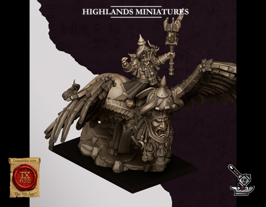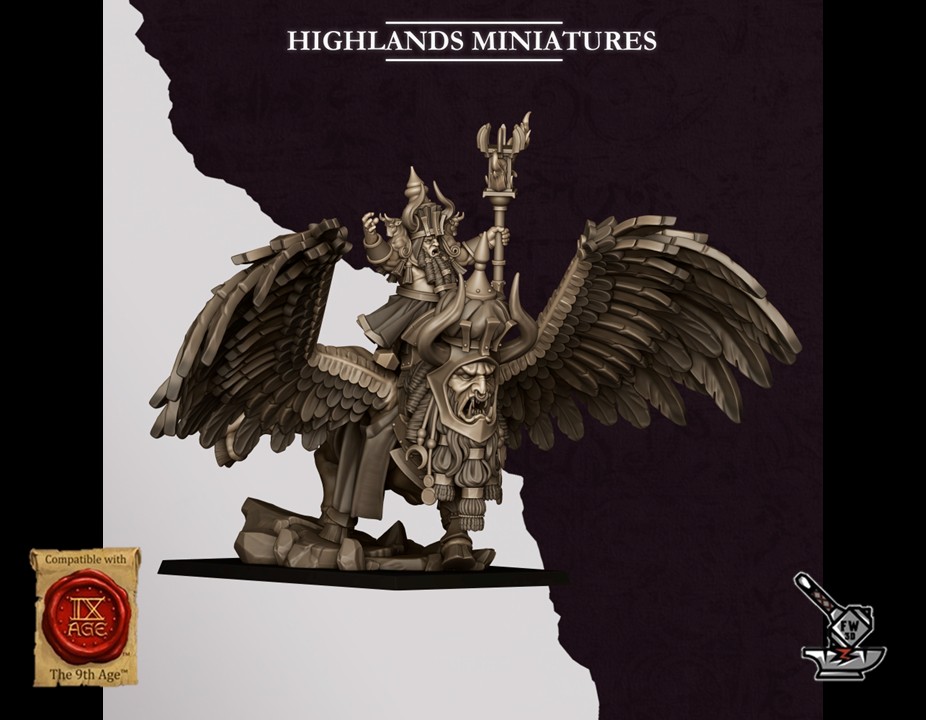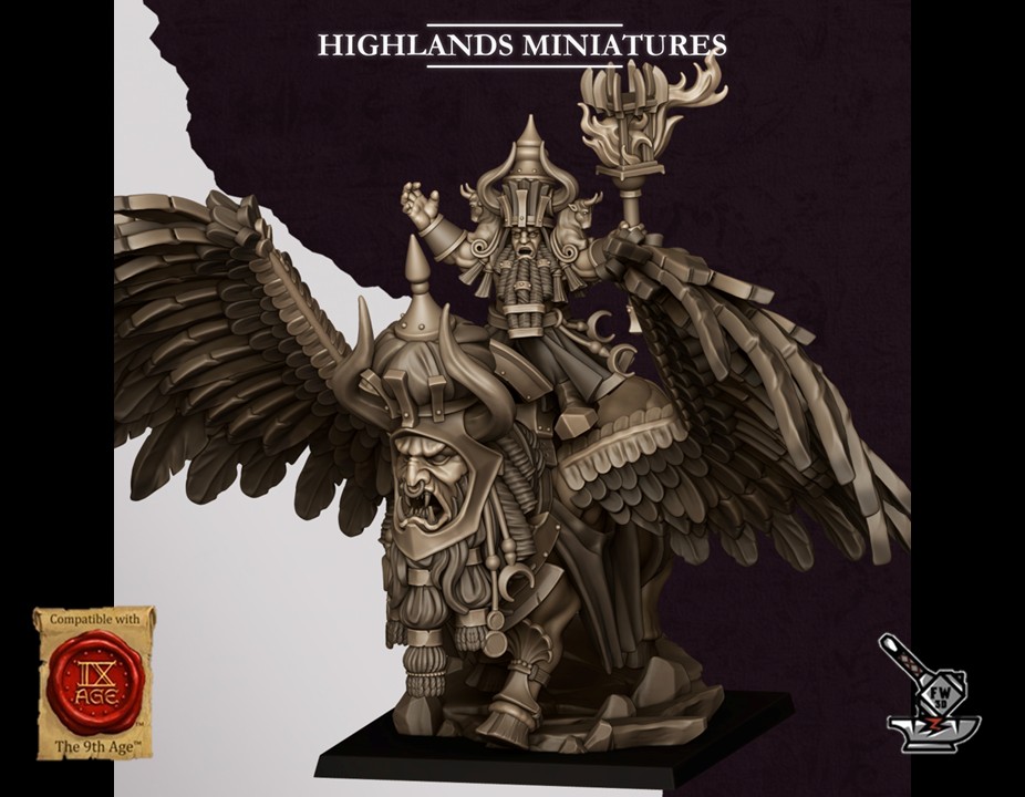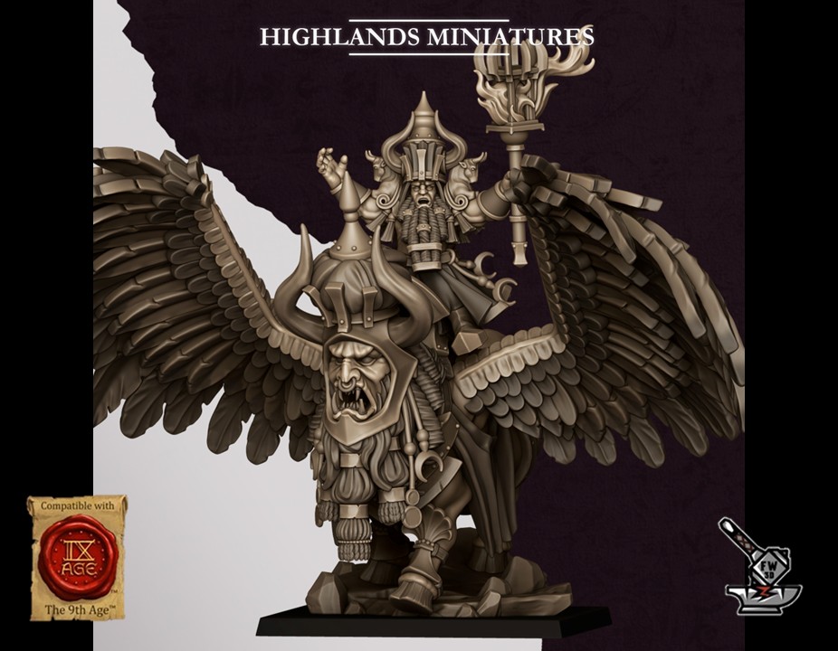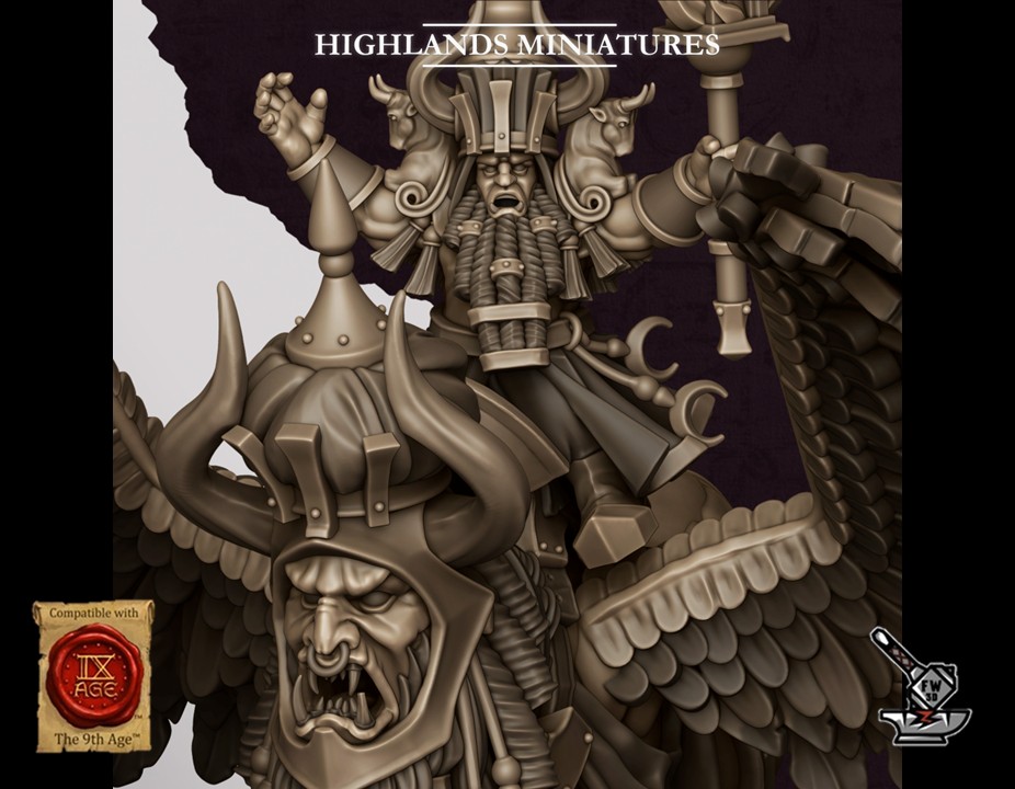 « Grand sorcier de Marduk sur lamassu », of the collection ” Sons of Marduk “, sculpté par Highlands Miniatures, is made of high quality resin. The figurine can be undercoated with spray paint or painted directly with a brush.