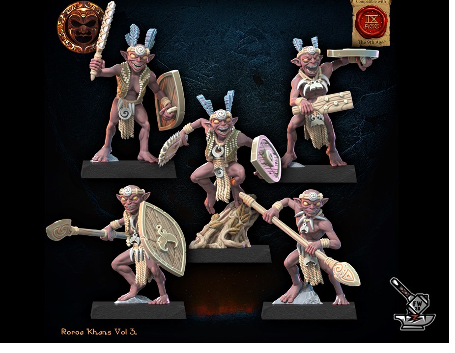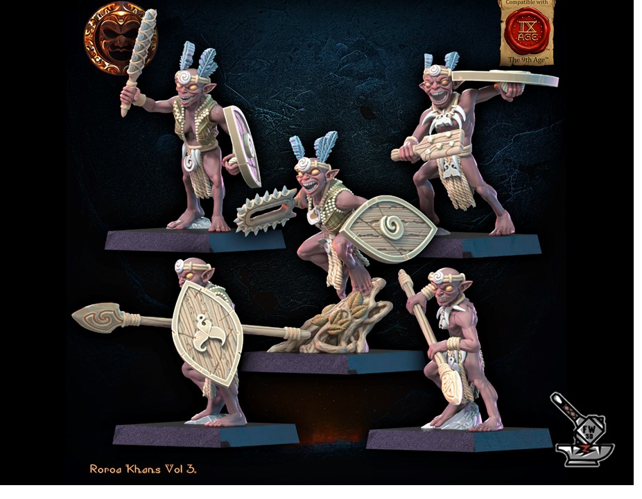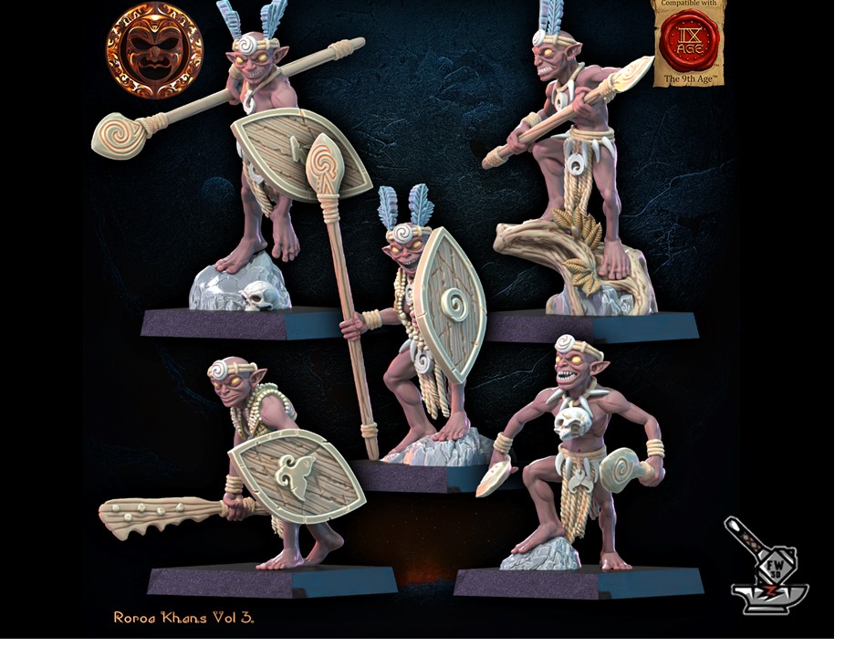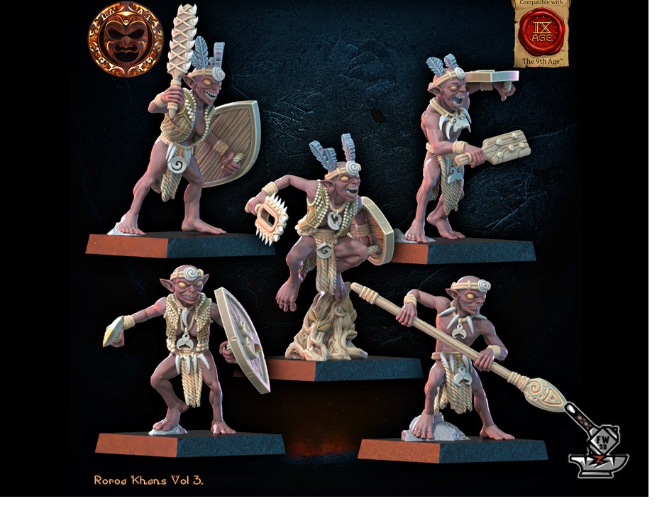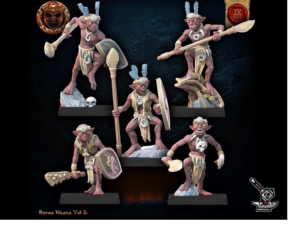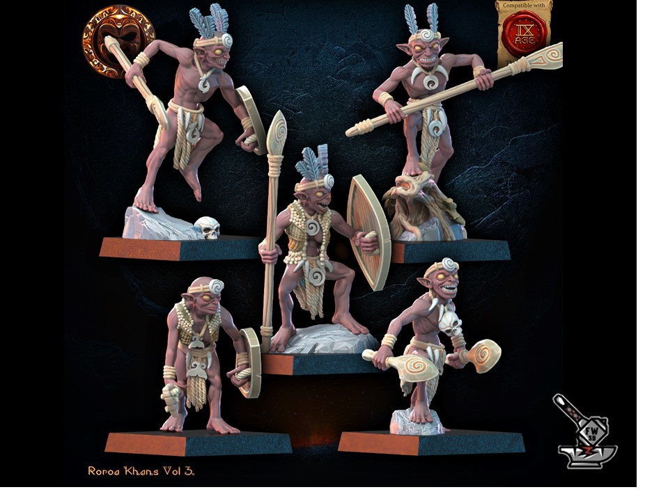 The ” 10 Yarablin des Roroa Khans ” of the collection ” Roroa Khan Vol 3 “, sculpted by Lost Kingdom Miniatures, are made of high quality resin. The figures can be undercoated with spray paint or painted directly with a brush.
