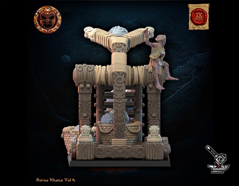 The ” Catapulte Yarablin des Roroa Khans ” of the collection ” Roroa Khan Vol 4 “, sculpted by Lost Kingdom Miniatures, is made of high quality resin. The figurine can be undercoated with spray paint or painted directly with a brush.