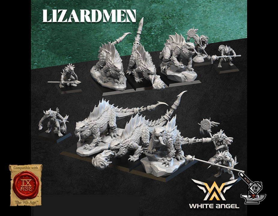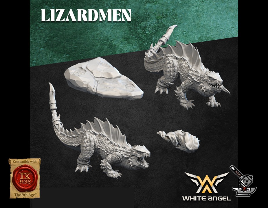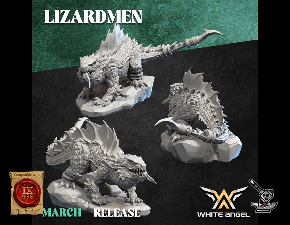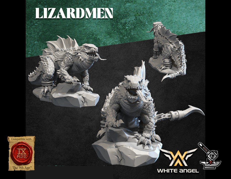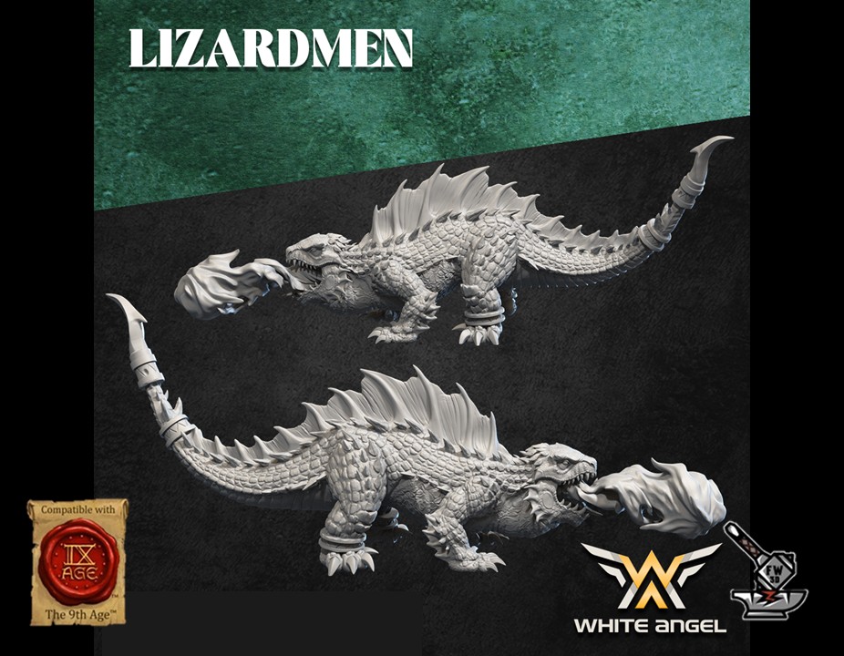 The ” 3 Lézards de feu et leurs dresseurs “, sculpted by White Angel Miniatures, are made of high quality resin. The figures can be undercoated with spray paint or painted directly with a brush.