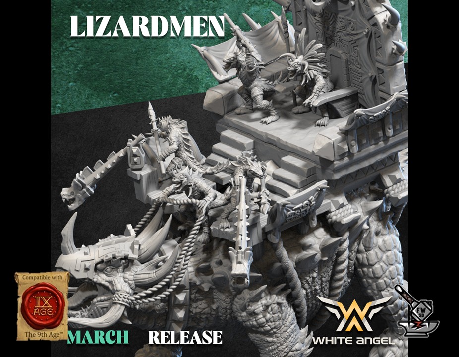 The ” Shaman sur tricératops Lézard “, Sculpted by White Angel Miniatures, is made of high quality resin. The figures can be undercoated with spray paint or painted directly with a brush.