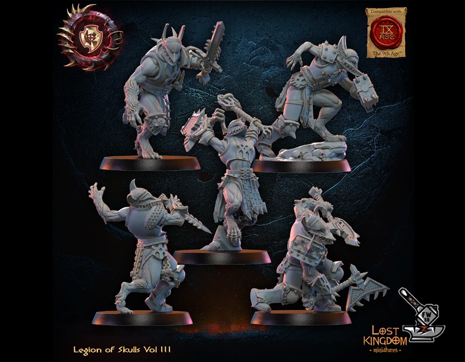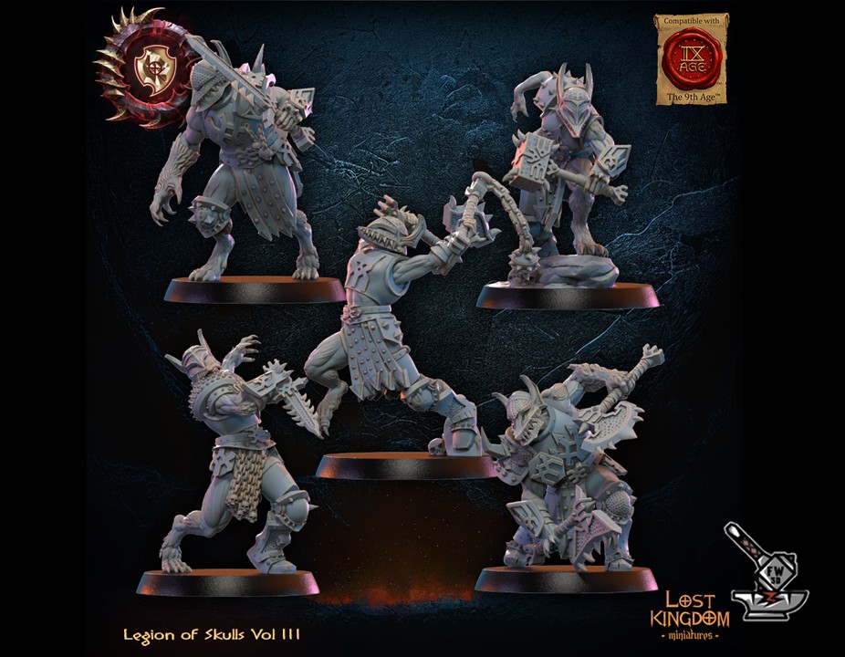 The ” 5 Guerriers Mooncurse Forsaken (front row) ” of the collection ” Legion of skulls vol 3 “, sculpted by Lost Kingdom Miniatures, are made of high quality resin. The figures can be undercoated with spray paint or painted directly with a brush.