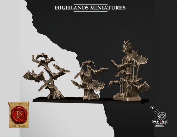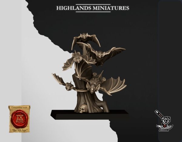 L’ « Essaim de chauve-souris », sculptés par Highlands Miniatures est en résine de haute qualité. The figures can be undercoated with spray paint or painted directly with a brush.
